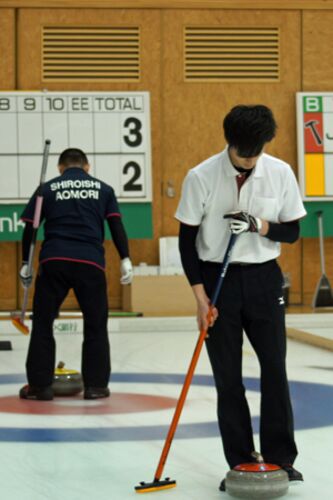先日行われた第12回東北MDカーリング選手権大会から。 カーリング競技を撮影するとき、 ついデリバリーやスウィーピングばかり撮ってしまいますが、 ふと思いついて撮影したミックスダブルスっぽい写真がこちら。 置石をセットするミックスダブルスならでは…
