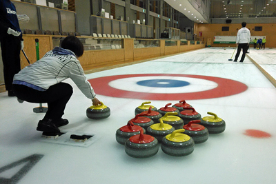 ブラシの邪魔にならない右サイドにストーンをプールするんです。