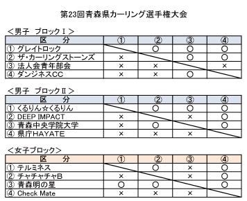 2010-01-23 第23回青森県カーリング選手権大会予選ラウンド終了~! 出来事 カーリング 予選ラウンドが終了しました。 頑張りましたが残念な結果に・・・(涙)。 結果は次のとおりです。 カーリングは、 肉体的にも精神的にもタフさが必要であることをつくづく感じました。 試合をこなすほどに、 肉体的にも精神的にも疲労がたまってショットの精度が・・・(涙)。 カーリングは、ハードなハードなスポーツです! 明日の決勝トーナメント、頑張って!!