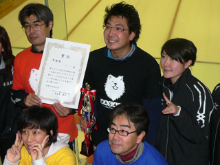 2010-06-12 ショックなカーリング・ニュースのあとで 出来事 カーリング ショッキングなカーリング・ニュースを知ったあと、 思い出の写真はないかと探してみました。 これは2009年カーリングサミットでのひとコマです。 イベントにずーっと付き合ってくれた目黒選手は、 準優勝に輝いた県庁の「チームわさお」の記念写真に 二つ返事手で快くおさまってくれました。 目黒選手、本当にありがとうございました。 ※ちなみにこのときは、 石崎選手、山浦選手、近江谷選手も一緒でしたよ。