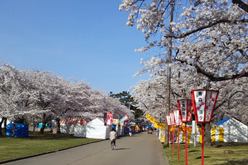 2017-04-25 お花見カーラーのためのサクラ情報2017(3) 出来事 カーリング お花見カーラーの皆さんへ、 今朝の合浦公園の様子です。 ご覧のとおり、サクラは満開! 春まつりの真っ最中で、出店も賑やかです。 お花見大会の当日は、 サクラがどれくらい残っているか心配です。